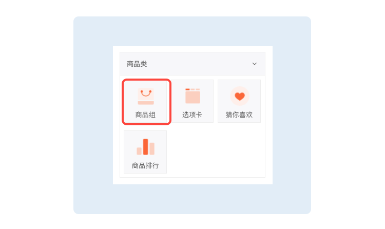 STEP04 选择商品组,示例选择两种商品组,使页面更丰富饱满。最终手机端效果图如下: